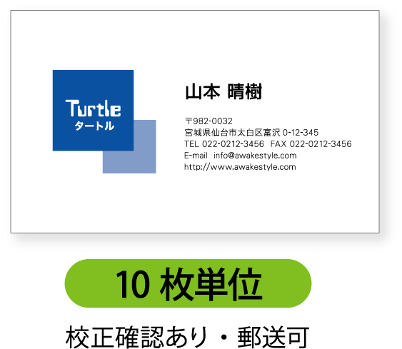 カラー名刺 名刺作成 名刺印刷 【10枚単位】四角を2個配置したデザインです。名刺印刷内容は注文フォームにご記入頂くか、別途メールでお知らせください。ロゴ、イラスト、写真の配置も可能です。ビジネス 趣味 プライベート お店 会社 詳しく見る