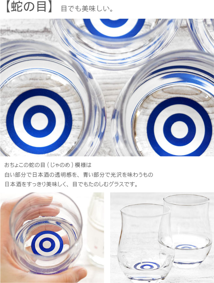 『目でもおいしい』蛇の目(じゃのめ) お猪口の底の涼やかな蛇の目模様は白い部分で日本酒の透明感を、青い部分で光沢を楽しむものです。